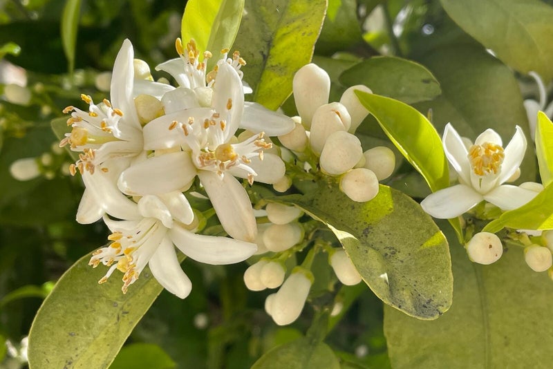 Er is echter ook een heel ander soort bloesem, die ik nu pas voor het eerst ontdekt heb. De bloesem van naranjas, van sinaasappels. Een bloesem met een sterke geur bovendien, die je bedwelmt wanneer je onder de boompjes doorloopt die hier in Andalusie als straatbomen gebruikt worden. De tocht naar de supermarkt wordt een verleiding. Deze bloesems hebben een delicate en zoete geur, levendig, tegelijk geparfumeerd en verkwikkend. Zware of nare gedachten worden erdoor opgebeurd. Het geeft de straat een elegantie, die met het minste briesje zacht heen en weer wiegt en je af en toe stil laat staan om beter te ruiken, je rustig maakt en bewust van dat kleine moment in je eigen leven. Zeker wanneer het zonlicht ze zacht beschijnt.