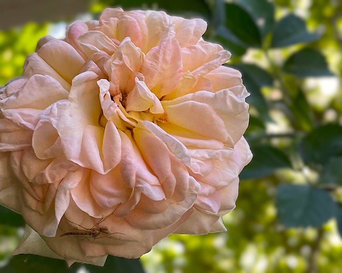 De rozen in hun oh zo specifieke kleuren, die nergens anders terug te vinden zijn – dan in een schilderij van Rubens – en die de tuin en het land iets volwassens geven. De bloemen die tot nu bloeiden waren jong, een tikje gedurfd in hun verschijning. Zo niet de roos, die hoereert met de zon en met de tijd. Zij hangt gedragen over de leuning, zij recht fier haar hoofd. Uitdeinend pruilen haar bloemblaadjes open en laten een tros zwaar geparfumeerde meeldraden zien die zinderend verlangen naar nieuw leven. Er komt geen einde aan deze onuitputtelijke erotiek.