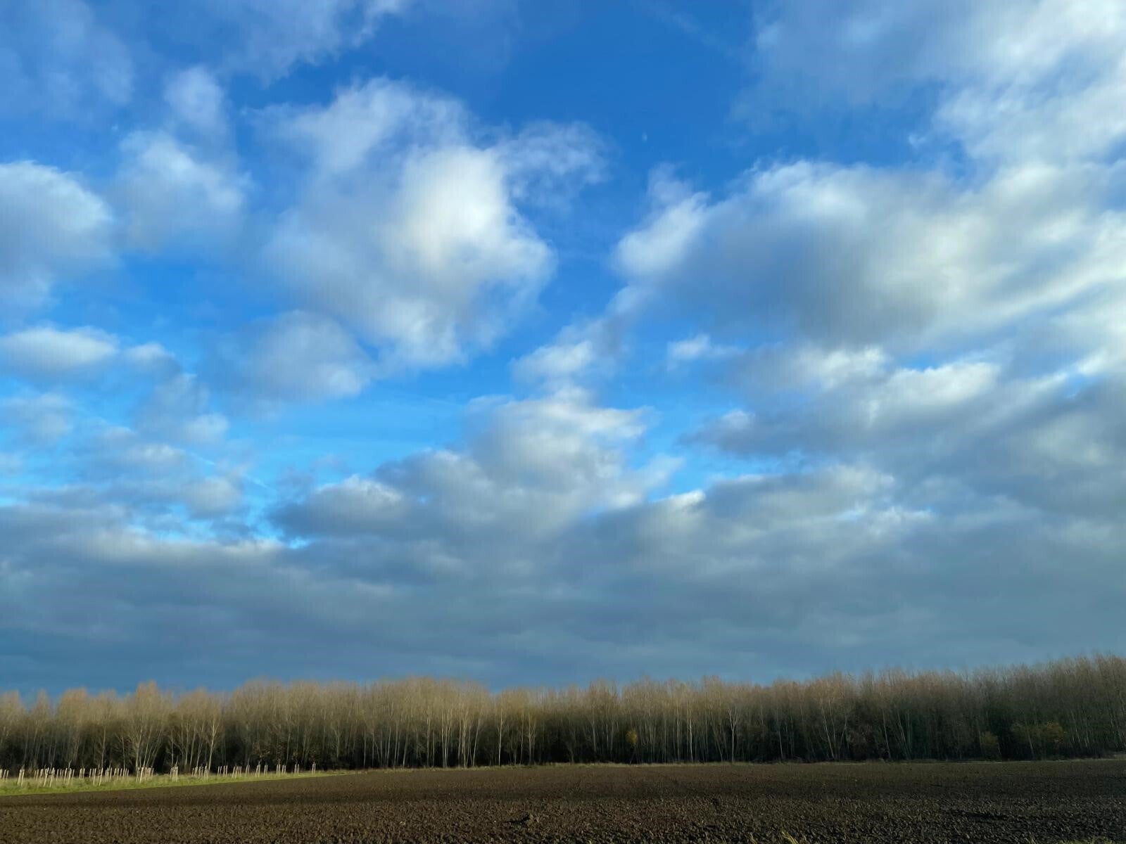 Soms ben ik het centrum van alle dingen. Ken je dat? Dan is het logisch dat de hele wereld van mij uitgaat, en dat alle dingen in mijn perspectief bestaan. Al zijn ze nieuw en jong, of al zijn ze drieduizend jaar oud, bijvoorbeeld, of hebben de vorm van een steen die drie miljoen jaar geleden ontstaan is. Voor mij. Ter mijner ere, omdat ik langs zou komen en hem zien liggen (of eraan voorbijloop zonder hem gezien te hebben). Dat is helemaal niet pretentieus op dat moment en op deze foto goed te zien. Het bos ligt daar aan mijn einder, de lucht, het blauw, de wolken, allemaal zo gerangschikt dat ze voor mij het beste uitkomen. Ze hadden zich ook van hun andere kant kunnen laten zien, maar nee, dat doen ze niet. Ik hoef alleen te klikken op mijn telefoontje, en een foto te maken, en zij kunnen weer verder met iets anders. Dan valt het geheel uiteen, omdat ik niet meer kijk.