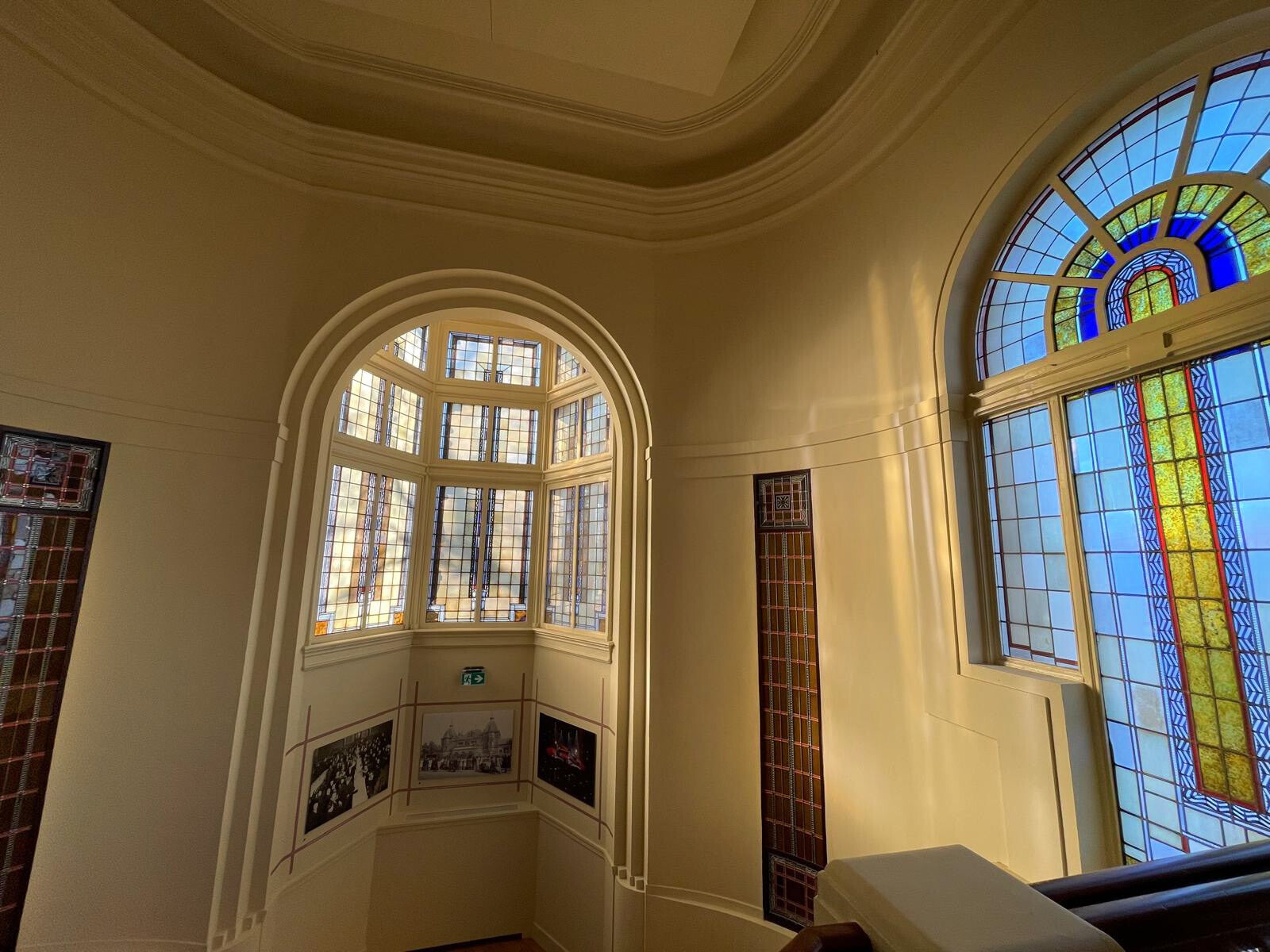 Voor een lezing kwamen we in het oude gedeelte van Musis in Arnhem, vroeger Musis Sacrum. Het is uit 1847 en ontworpen door architect Hendrik Willem Fromberg. Hier een beeld van het trappenhuis.