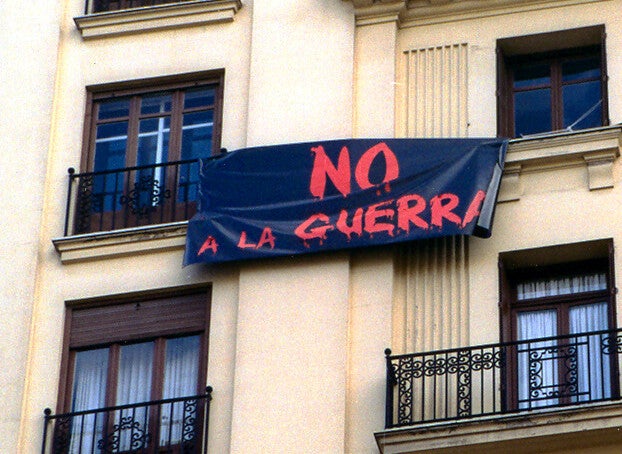 Deze foto maakte ik in Madrid, in de tijd van de oorlog tegen Irak, waar Spanje toen wél aan meedeed en de bevolking fel tegen was.